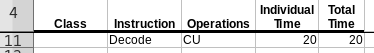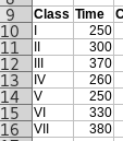 - One a second worksheet, I want to compute the time for each class of instruction.