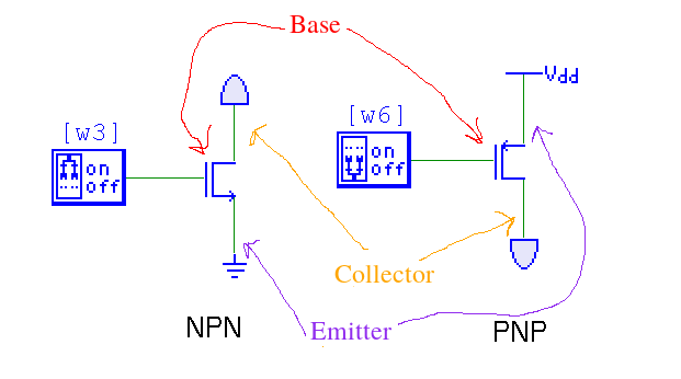 - If a charge is applied (or not applied) to the base data from the emittor is transfered to the collector.