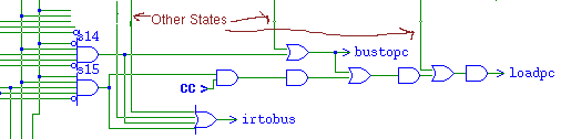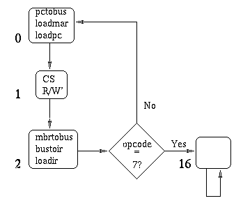 - 14 we transfer the bus to the PC, in 15 we increment the pc.