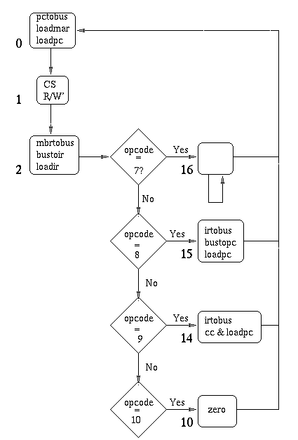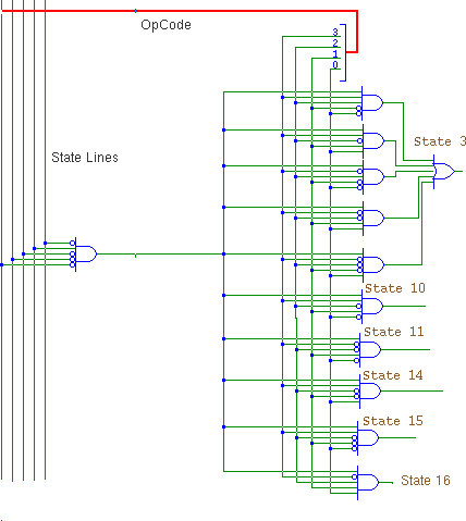 - State 2 must check the 4 bits of the opcode to decide where to go next.