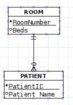 - Here a room may be assigned to many patients, but a patient must be assigned to one room.