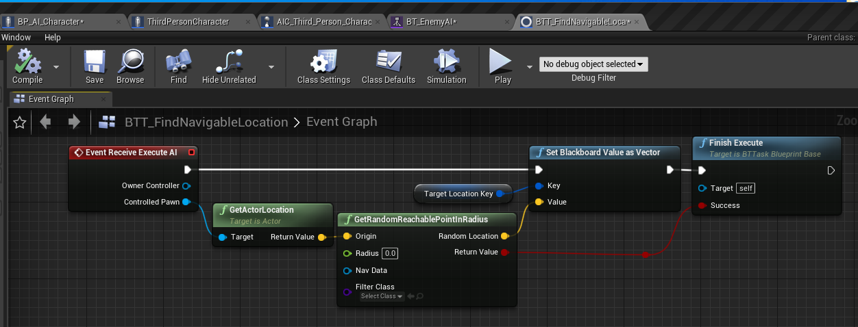 - Right click and select BTT_FindNavigableLocation