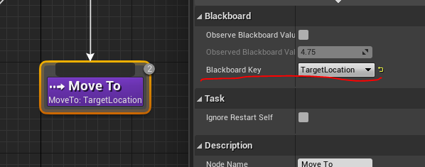 - Set the Blackboard Key to be Target Location