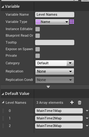 - LevelNames, an array of names.