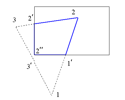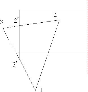 - Line {2,3} goes from inside to outside, so pass 2' along.