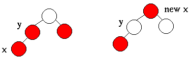 RotateLeft(T,x) ( 1) y = x.rightChild() ( 2) x.right = y.leftChild() ( 3) if (y.leftChild() != NIL) ( 4) y.leftChild(y).parent = x ( 5) y.parent = x.parent() ( 6) if x.parent() = NIL ( 7) T.root = y ( 8) else ( 9) if x = x.parent().leftChild() (10) x.parent().left = y (11) else (12) x.parent().right = y (13) y.left = x (14) x.parent = y find y move T2 to become x's right child reparent things move x to be y's right child