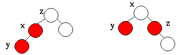 ( 1) TreeInsert(T,x) ( 2) x.color = red ( 3) while x != T.root() and color x.parent().color == red ( 4) if x.Parent() = x.parent().parent().leftChild() ( 5) then y = x.parent().parent().right ( 6) if y.color() == red ( 7) x.parent().color = black // all case I ( 8) y.color = black ( 9) x.parent().parent().color = red (10) x = x.parent().parent() (11) else if x == x.parent().rightChild() (12) x = x.parent() // case II (13) LeftRotate(T,x) (14) x.parent().color = black // case III (15) x.parent().parent().color= red (16) RightRotate(T,x) (17) else (18) repeat lines 5-16, replace right with left and left with right (19) T.root().color = black