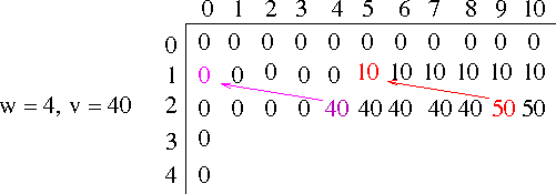F(i,w) 0 1 2 3 4 5 6 7 8 9 10