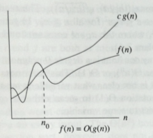 - $O(g(n)) = \{f(n) : \exists ~ c > 0, n_0 > 0 \ni 0 \le f(n) \le cg(n) ~ \forall ~ n \ge n_0\}$