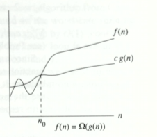 - $\Omega (g(n)) = \{f(n) : \exists ~ c > 0, n_0 > 0 \ni 0 \le cg(n) \le f(n) ~ \forall ~ n \ge n_0\}$