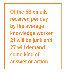 - Each week the average person in the study spends 11.7 hours at work processing email.