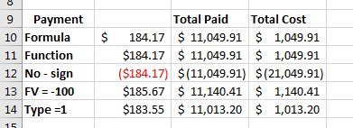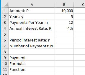=pmt(b6, b7, -b1, 0, 1)