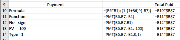 =pmt(b6, b7, -b1, -100)