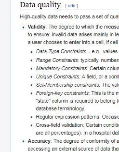 - The points Data-Type through Cross-field validation are all a sublist under Validity.