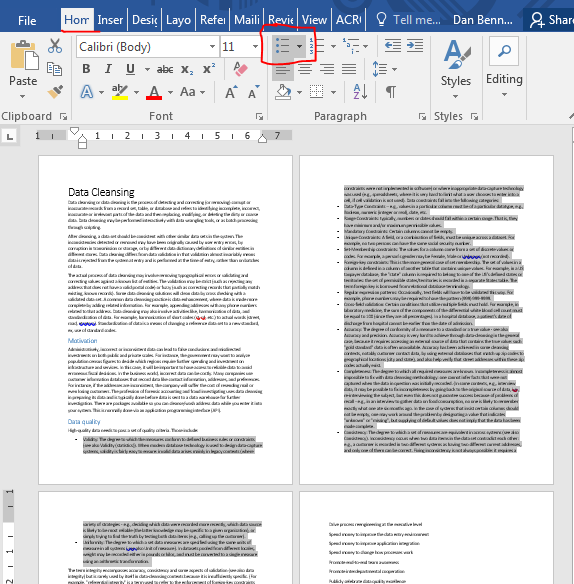 - On the Home tab, in the Paragraph workgroup select Bullets