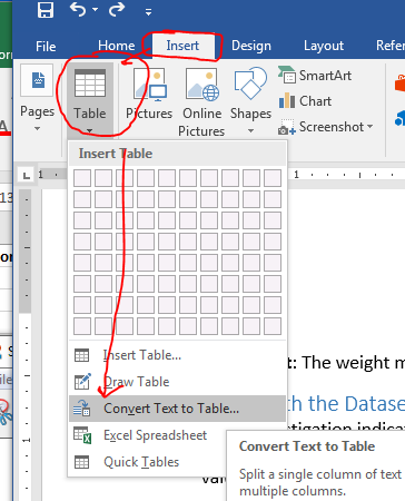 On the Insert tab, select Table, and then Convert Text to Table