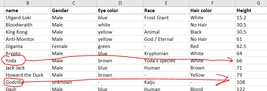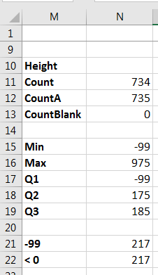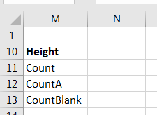 - In M10, put Height, M11, Count, M12, CountA, M13 CountBlank