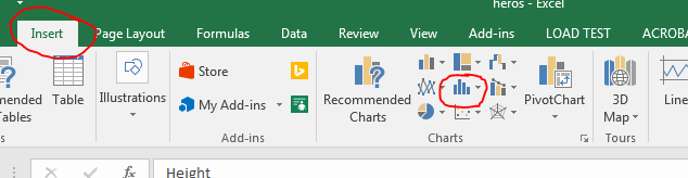 - Insert tab, Charts workgroup, Insert Statistics Chart.
