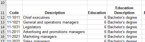 - Filter on education, only the level you have obtained (Some College, High School Diploma, No Formal Education.)