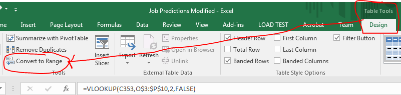 - On the Table Tools Design special tab under the Tools workgroup select Convert To Range