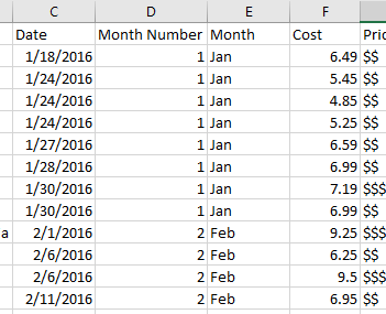- Using vlookup and the table you just built, look up the name of each month in the Month Number field of the Data worksheet. Place this in the Month field.