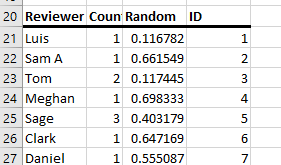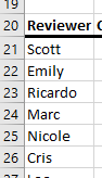 - Use the table you just constructed to Add a Reviewer ID field which contains the Reviewer ID corresponding to the Reviewer in column I.