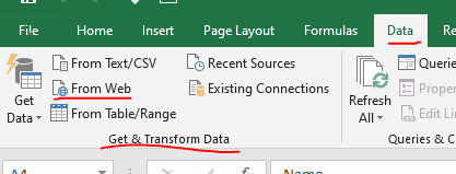 - On the Data tab in the Get & Transform Data workgroup select From Web