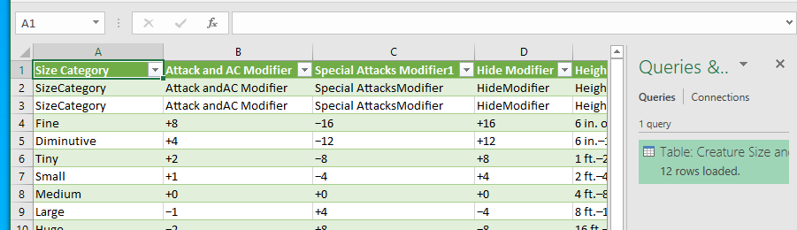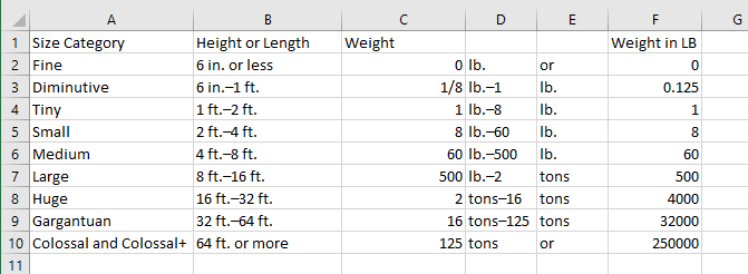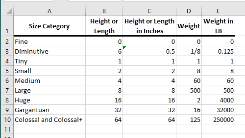 - I would like to use this table to classify my superheros weight and height as Fine, Diminutive, ... Colossal