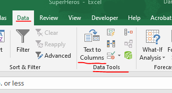 - We will use the Text To Columns from the Data Tools command group in the Data tab to do this.