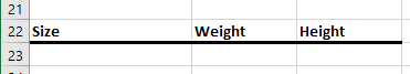 - In cell A22:C22 put the following