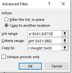 - Use this table and an advanced filter to get a new table with weights and heights not equal to na.