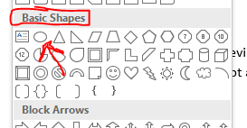- On the Insert tab, Illustrations command group select the Shapes Dropdown.