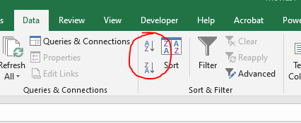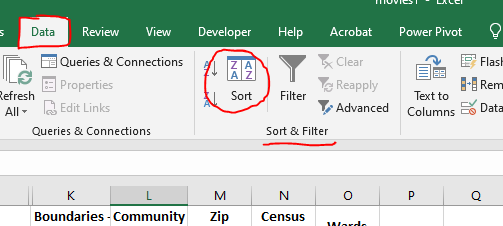 - On the Data tab in the Sort & Filter command group select Sort