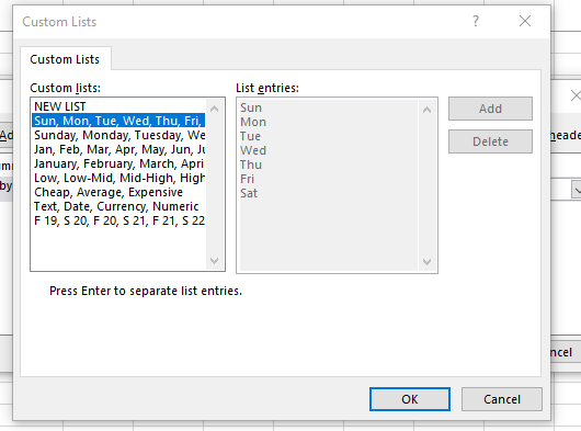- Drop the Order list down and select Custom List