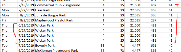 - If I sorted the data by the park name it might help show this relationship.