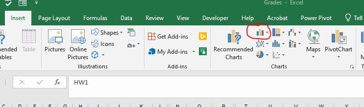 - Select the Column or Bar chart dropdown from the Charts command group on the Insert