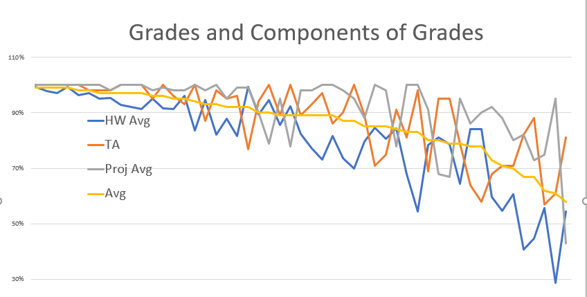 - Notice a lookup table, and a count if for the grades at the bottom of the sheet.
