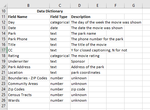 - We are working with the 2019 Chicago Movies in the Park Dataset.