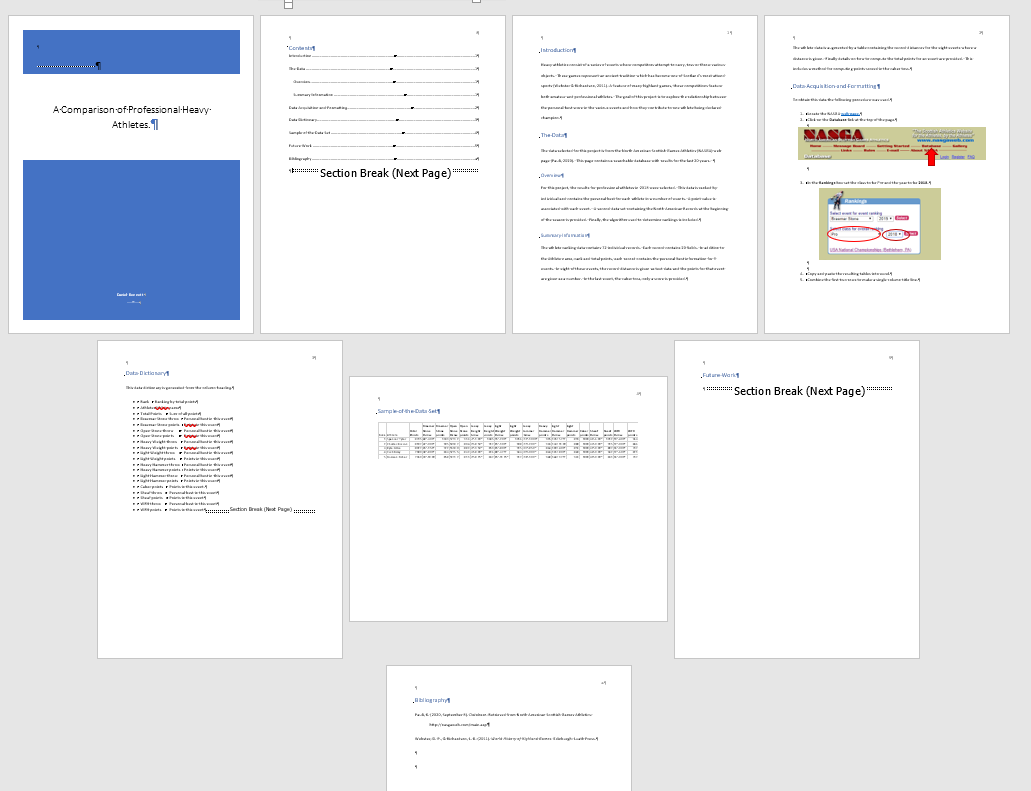 - "Introduction", "The Data", "Data Acquisition and Formatting", "Data Dictionary" "Sample of the Dataset", and "Future Work" are all primary headings.
