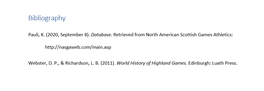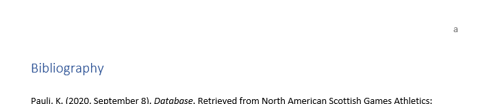 - The Bib should be numbered with lower case letters, (a, b, c, ...) starting with a.
