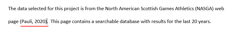 - Add a second citation to the NASGA web page at the end of the first sentence in the section labeled The Data. This was from the Database page, assume you retrieved the citation today. Note the author's name is on the front page.