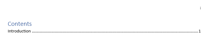 - The table of contents should be numbered with Roman numerals (i, ii, iii) starting with i.