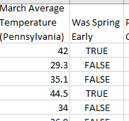 - My criteria was: Is the pa average March temperature more than one standard deviation above the average of the March averages?