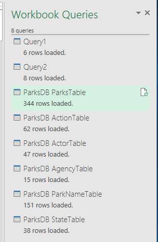 - Note: you will not have to issue USE ParksDB. That is done for you by excel.