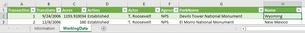 - Load this to a new worksheet called Working Data.