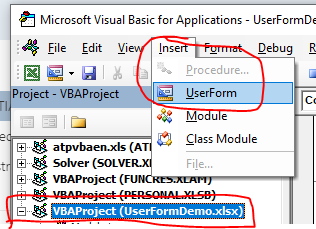 On the Insert button, select UserForm