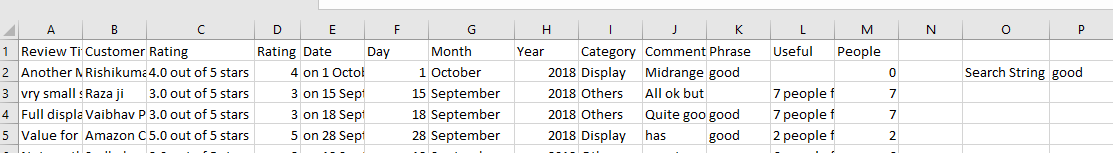 - In cell P2 put a word that might be in the comments.