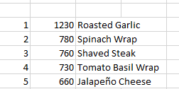 - enter =Quartile.inc(calories,{0;1;2;3;4}) use ctrl-shift-enter