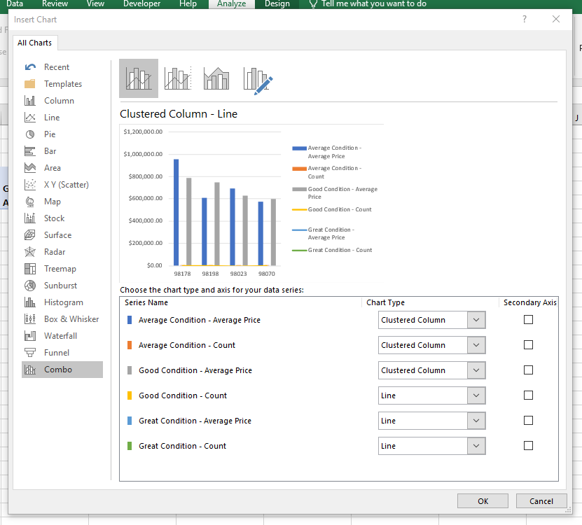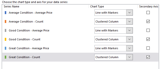 - We have two really different scale pieces of information, so the only thing that really makes sense is a combo chart