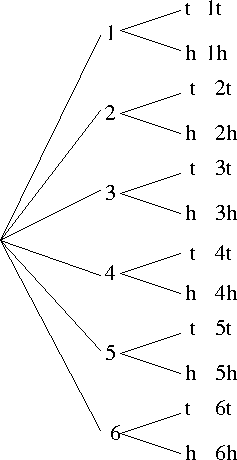 - So there are 6× 2 or 12 outcomes from combining the two.